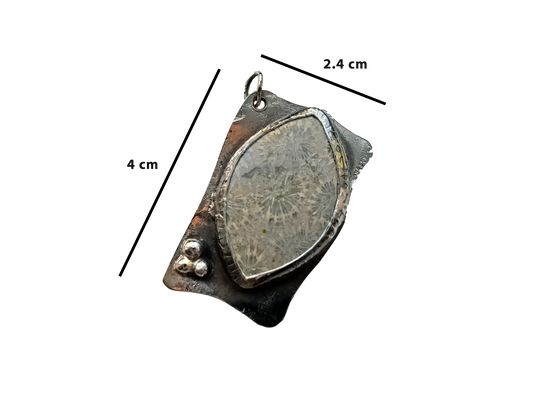 Fosil Mercan - El Yapımı 925 Ayar Gümüş Bronz Metal Kolye