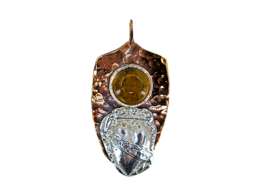 Kalp ve Sitrin - Sevgi - El Yapımı Gümüş Kolye