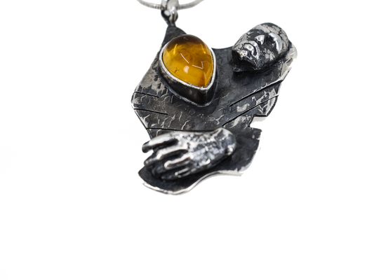 Yüz ve El - İnsan Manzaraları - El Yapımı 925 Ayar Gümüş Kolye