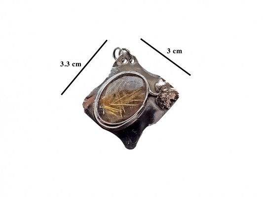 Rutil Kuvars - El Yapımı 925 Ayar Gümüş Bronz Metal Kolye