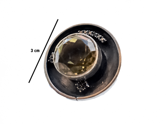 Topaz ve Siyah Pırlanta - El Yapımı 925 Ayar Gümüş Yüzük