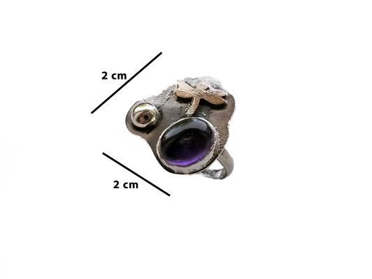 Ametist - El Yapımı 925 Ayar Gümüş Bronz Yüzük