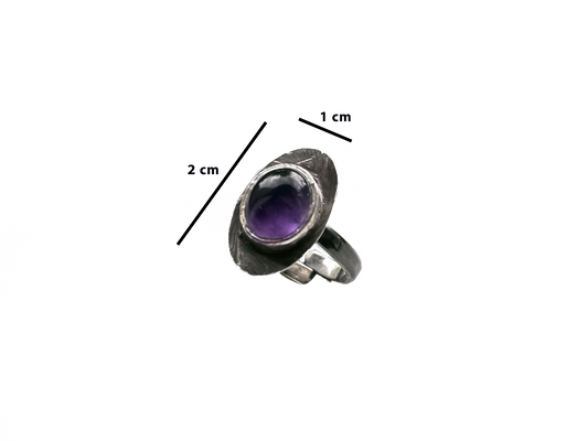 Amethyst - Handmade 925 Sterling Silver Copper Ring